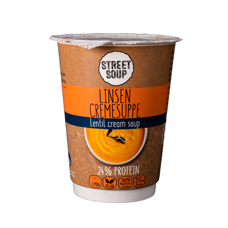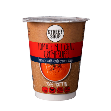 Mit einer Street Soup Instant-Cremesuppe hast du schnell eine genussvolle Auszeit, wenn der Hunger kommt! Eine Portion macht dich satt, ohne dich zu beschweren. Dank vieler Proteine und weniger Kalorien bleibst du satt und in der Balance: Street Soup steht für deine Suppenkur bereit.