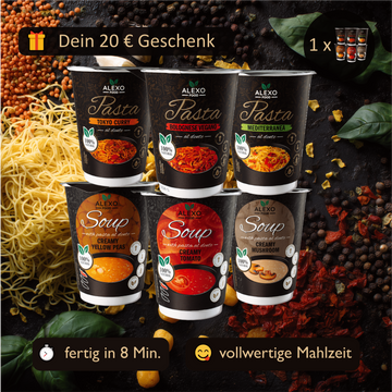 🎁 Bonus: 6 Alexo Food Gerichte (Wert: 20 €) gratis im Paket!
