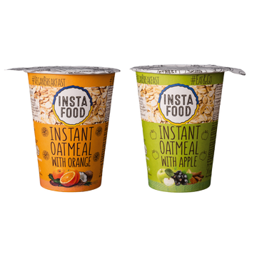 - Porridges: Heißes Wasser oder Milch dazugeben, 3 Minuten ziehen lassen, fertig.