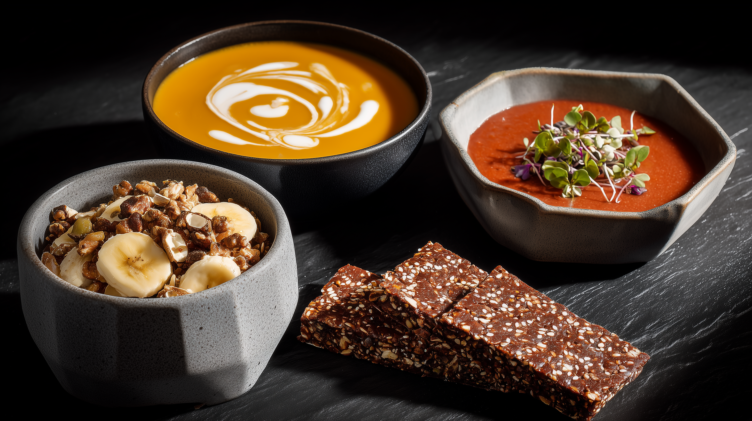 Absolut! Wir verwenden keinerlei tierische Produkte, Palmöl oder Industriezucker. Alle Cremesuppen, Porridges und Raw Bars sind von Natur aus vegan und glutenfrei.