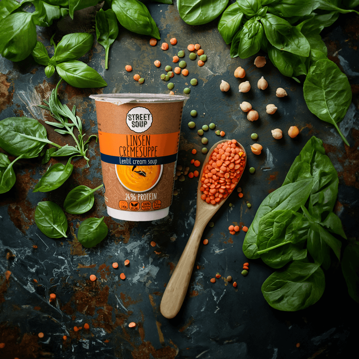 Absolutely! Our instant soup in the cup is perfect for on the go. Thanks to the practical packaging, it can be easily transported. There is also a wooden stick that you can use to stir and also spoon. So Street Soup is ideal for the office, the university, or as a snack for on the go.
