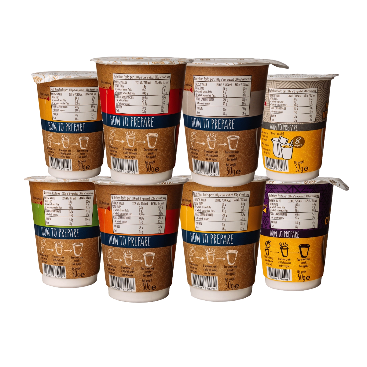 In the trial set you will find six different flavors of our instant cream soups. So you can try out every variety and find your favorite.