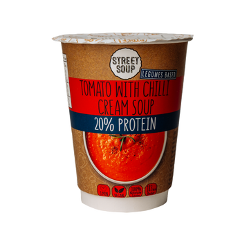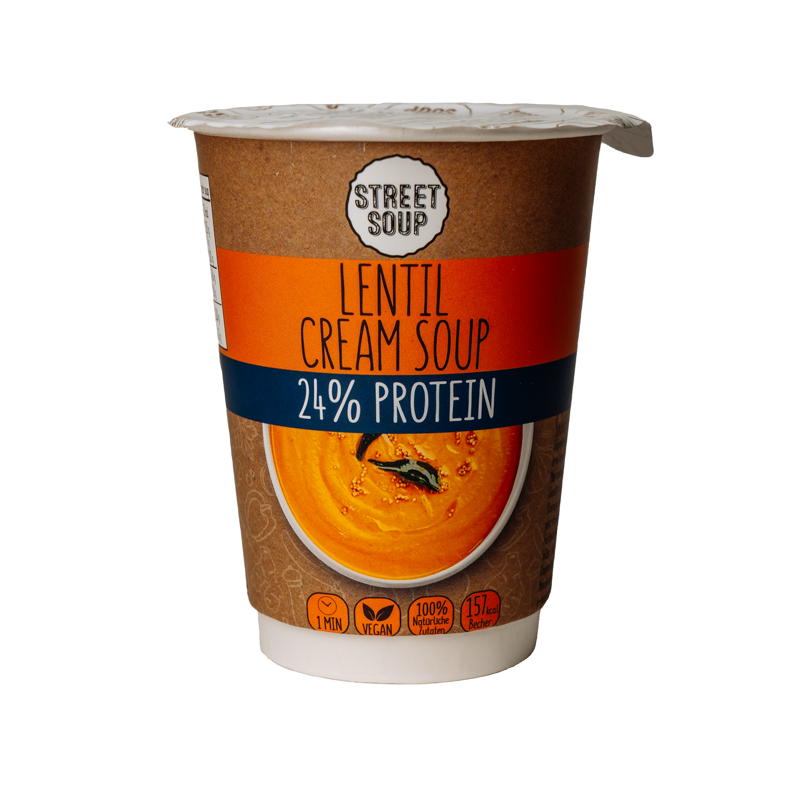 Street Soup ist eine Instant-Suppe, die in weniger als einer Minute zubereitet ist. Mit teilweise mehr als 20 % Protein pro Portion versorgst du deinen Körper bestens mit pflanzlichem Eiweiß. Jede Suppe wird ausschließlich aus natürlichen Zutaten liebevoll hergestellt. Lass dich von den vielfältigen Aromen verzaubern und genieße jeden Löffel. Street Soup ist die perfekte Mahlzeit für alle, die schnell etwas Leckeres brauchen und dabei auf eine gesunde Ernährung achten. Probiere es jetzt aus und entdecke die köstlichen Cremesuppen von Street Soup!