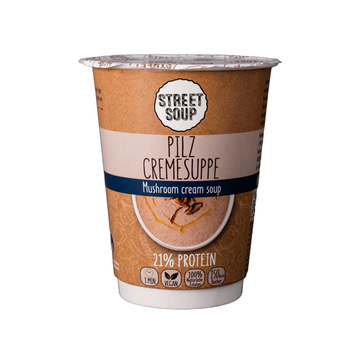 Mit einer Street Soup Instant-Cremesuppe hast du schnell eine genussvolle Auszeit, wenn der Hunger kommt! Eine Portion macht dich satt, ohne dich zu beschweren. Dank vieler Proteine und weniger Kalorien bleibst du satt und in der Balance: Street Soup steht für deine Suppenkur bereit.